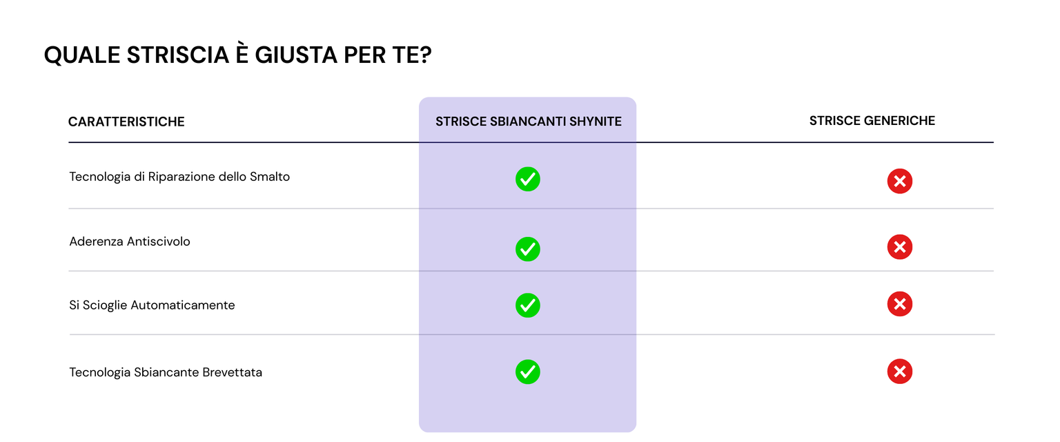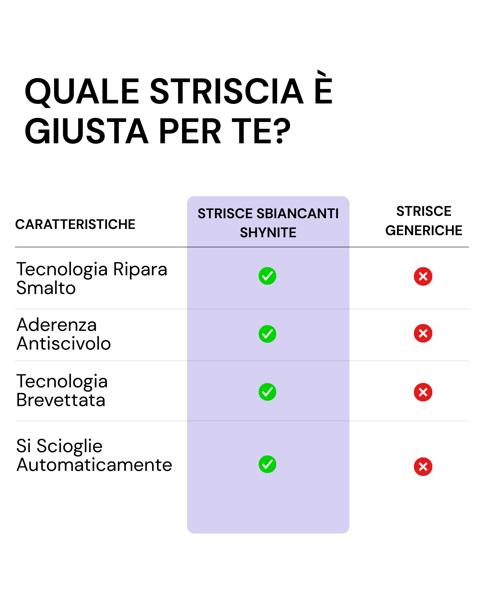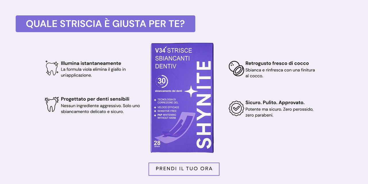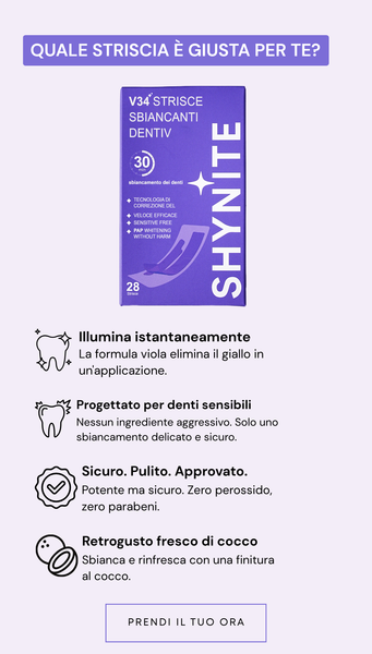 Notti insonni, vino o sigari: niente paura. Le strisce sbiancanti SHYNITE agiscono sulle macchie fin dalla loro origine, donandoti una luminosità duratura e zero sensibilità dentale.