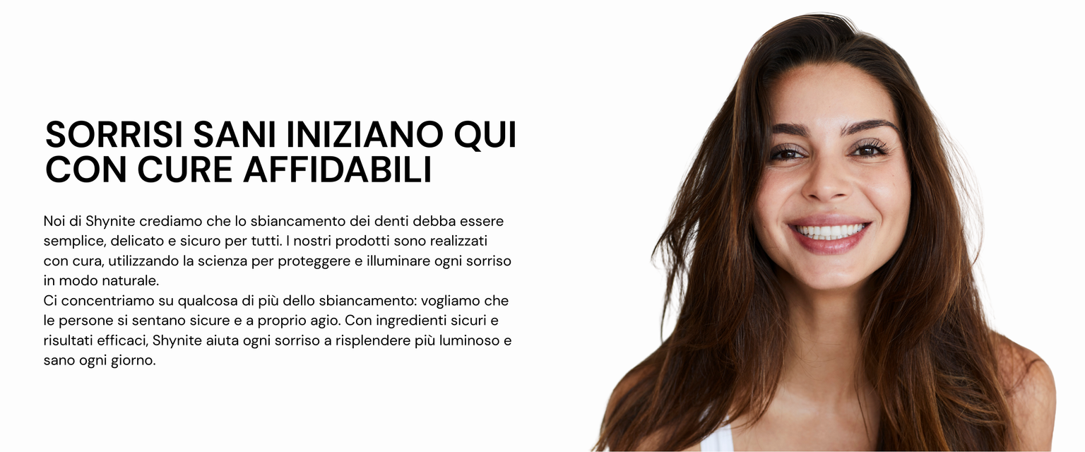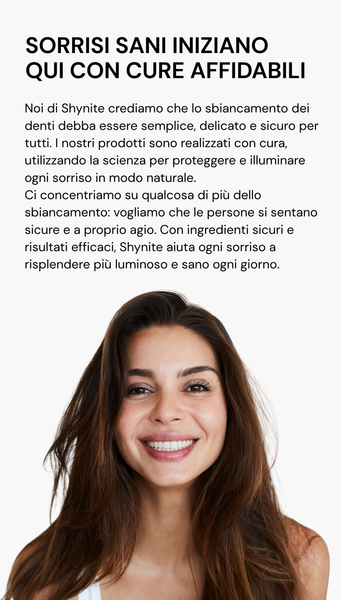 Prima nascondevo il mio sorriso. Ora lo mostro con orgoglio! SHYNITE mi ha dato la luminosità di cui non sapevo di aver bisogno e ora è la mia routine. — Alec B.